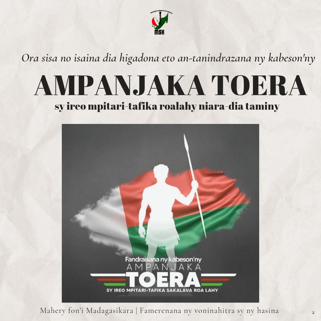 Higadona eto an-tanindrazana ny kabeson'ny Ampanjaka Toera sy ireo mpitari-tafika Sakalava niara-dia taminy, mahery fon’i Madagasikara, nandà ny fifehezan’ny mpanjanaka, namoy ny ainy ho an’ny tanindrazana. Mari-pamantarana lehibe amin’ny tantara sy ny kolontsaina malagasy izany. Ny herim-po nananany, ny fitiavany tanindrazana, ary ny soatoavina nentim-paharazana navelany, 128 taona aty aorian’ny namonoana azy.Nitondra ny ady niaraka tamin’ny tafiny i Toera, niatrika ny basy aman-tafondron’ny tafika frantsay. Ny 6 Novambra 2020, nandritra ny fitokanana ny Rovan’i Madagasikara, dia nambaran’ny Filoha Andry Rajoelina  tanaty lahateniny ny tsy maintsy hamerenana ireo kabeso ireo.#Ranty  #Kolontsaina #Toera #Menabe #SoatoavinaMalagasy