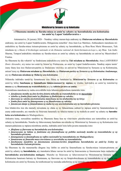 HISITRAKA FIOFANANA MOMBA NY FITANTANANA MOZEA SY TRANOMBAKOKA NY MINISITERAN’NY SERASERA SY NY KOLONTSAINA