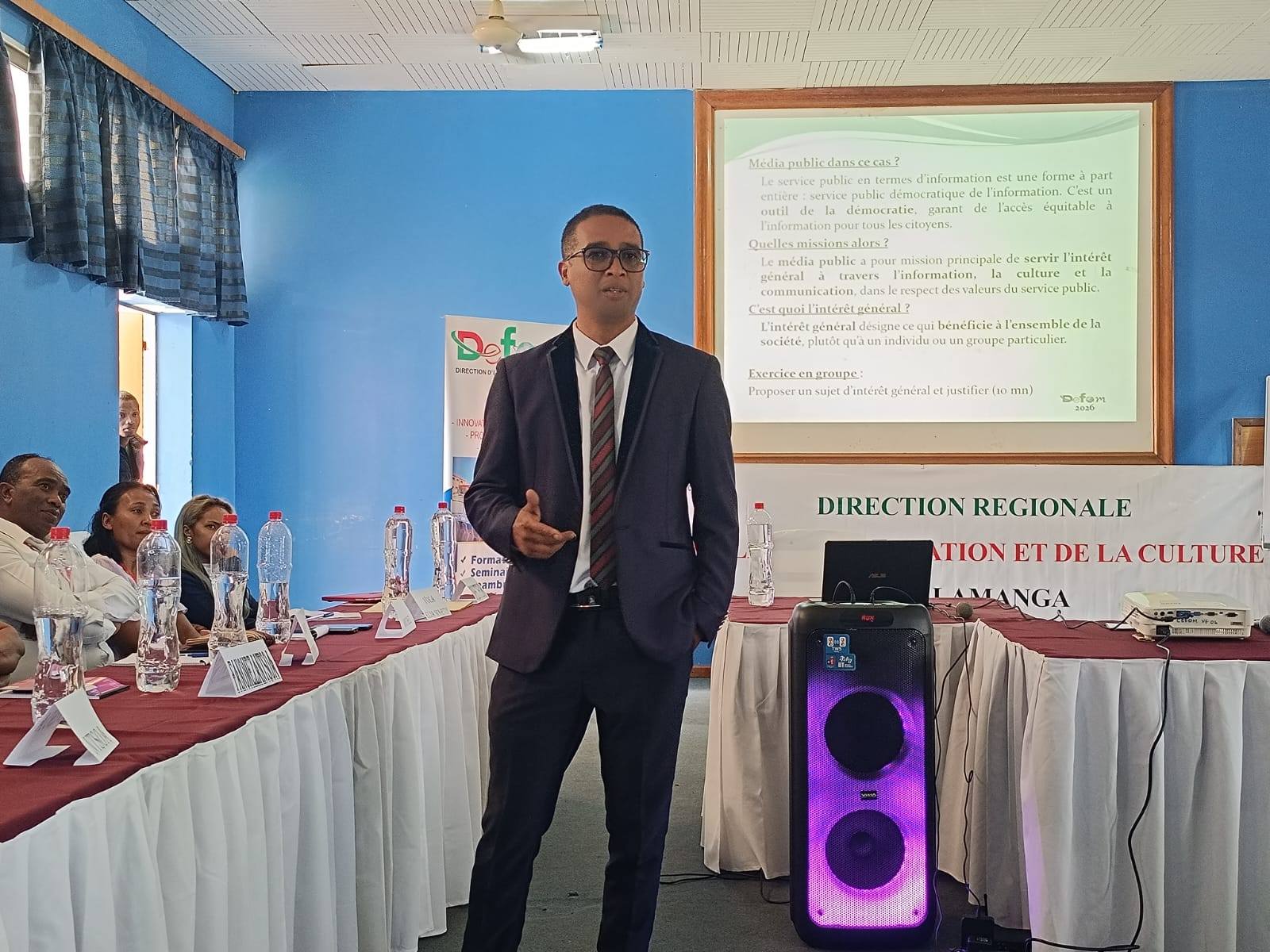 Samy ๐˜”๐˜ฑ๐˜ข๐˜ฏ๐˜ข๐˜ฐ ๐˜จ๐˜ข๐˜ป๐˜ฆ๐˜ต๐˜บ matihanina, sy ๐˜”๐˜ฑ๐˜ข๐˜ฏ๐˜ข๐˜ฐ ๐˜จ๐˜ข๐˜ป๐˜ฆ๐˜ต๐˜บ am-perinasa ny ๐˜›๐˜ข๐˜ญ๐˜ฆ ๐˜‘๐˜ฆ๐˜ฏ๐˜ฆ๐˜ณ๐˜ข๐˜ญ๐˜ช๐˜ฏโ€™๐˜ฏ๐˜บ ๐˜š๐˜ฆ๐˜ณ๐˜ข๐˜ด๐˜ฆ๐˜ณ๐˜ข ๐‘น๐‘จ๐‘ฒ๐‘ถ๐‘ป๐‘ถ๐‘ด๐‘จ๐‘ณ๐‘จ๐‘ณ๐‘จ ๐‘ญ๐’‚๐’๐’š ๐‘ด๐’‚๐’‰๐’†๐’‡๐’‚๐’๐’Š๐’“๐’Š๐’๐’‚, sy ny ๐˜›๐˜ข๐˜ญ๐˜ฆ ๐˜ฎ๐˜ช๐˜ด๐˜ข๐˜ฉ๐˜ข๐˜ฏ๐˜ข ๐˜ฏ๐˜บ ๐˜ง๐˜ข๐˜ฏ๐˜ฐ๐˜ง๐˜ข๐˜ฏ๐˜ข๐˜ฏ๐˜ข  ๐‘น๐‘จ๐‘ป๐‘บ๐‘ฐ๐‘ด๐‘ฉ๐‘จ๐’๐‘จ๐‘ญ๐’€ ๐‘ญ๐’†๐’“๐’…๐’Š๐’๐’‚๐’๐’… izay miara-mifarimbona manolotra fanofanana ho anโ€™ireo mpandray anjara aminโ€™ny fiofanana eny aminโ€™ny Ivon-toeram-piofanana CEFOM eny Maimbahoaka Ivato.Nomarihanโ€™ny Tale Jeneralinโ€™ny Serasera, fa haparitaka manerana ny nosy ity fiofanana hikendrena ireo mpanao gazety ity, ary santatra ihany ity natao tetsy Maibahoaka-Ivato ity. Ankehitriny dia tanjonโ€™ny Ministera ny hivondronanโ€™ny fampiofanana momba ny haino vaky jery eo anivonโ€™ny DEFOM ary hanentanany ny mpiara-miombonโ€™antoka ny aminโ€™ny fiaraha-mientana momba izany satria ny ๐™›๐™–๐™ฃ๐™–๐™ซ๐™–๐™ค๐™ฏ๐™–๐™ฃ๐™– ihany koa dia mandalo aminโ€™ny fanatsarร na ny kalitaonโ€™ny asa, indrindra asa saro-pady ny asa an-gazety sy ny haino vaky jery. Manana ny ๐™„๐™ซ๐™ค๐™ฃ-๐™ฉ๐™ค๐™š๐™ง๐™–๐™ข-๐™ฅ๐™ž๐™ค๐™›๐™–๐™ฃ๐™–๐™ฃ๐™– rahateo ny ๐˜”๐˜ช๐˜ฏ๐˜ช๐˜ด๐˜ช๐˜ต๐˜ฆ๐˜ณ๐˜ข๐˜ฏโ€™๐˜ฏ๐˜บ ๐˜š๐˜ฆ๐˜ณ๐˜ข๐˜ด๐˜ฆ๐˜ณ๐˜ข ๐˜ด๐˜บ ๐˜ฏ๐˜บ ๐˜’๐˜ฐ๐˜ญ๐˜ฐ๐˜ฏ๐˜ต๐˜ด๐˜ข๐˜ช๐˜ฏ๐˜ข ka haverina hampiasaina hanaovana fanofanana momba ny asa fanaovan-gazety sy ireo mpisehatra eo aminโ€™ny tontolonโ€™ny serasera sy ny kolontsaina araka ny nambaranโ€™ny ๐˜”๐˜ช๐˜ฏ๐˜ช๐˜ด๐˜ช๐˜ต๐˜ณ๐˜ข ๐‘ฎ๐‘จ๐‘บ๐‘ช๐‘จ๐‘น ๐‘ญ๐’†๐’๐’๐’”๐’๐’‚, satria anisan'ny politika apetraky ny Minisitry ny Serasera sy ny Kolontsaina, ny fanamafisana ny fampiofanana ny mpanao gazety sy ny mpisehatra amin'ny serasera sy ny kolontsaina. Mpanao gazety rahateo izy nialohan'ny naha-olomboafidy sy naha-mpikamban'ny Governemanta azy ary mahatsapa fa tamberin'andraikitra lehibe ho an'ny Ministera tantaniny ny fanatsarร na ny kalitaon'ny asa fanaovan-gazety sy ny haino vaky jery.