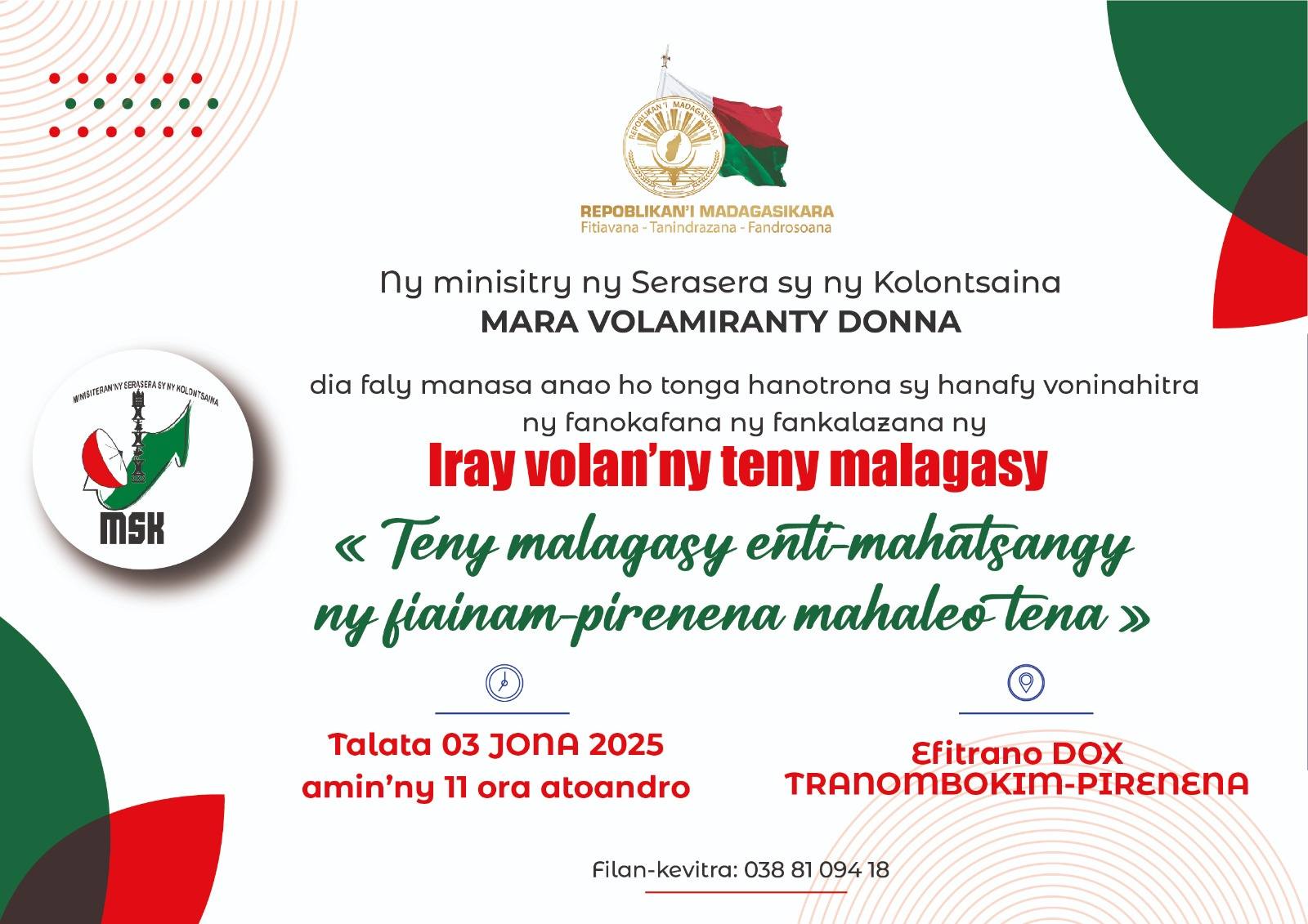 Nampahatsiahivin’ny 𝘛𝘢𝘭𝘦 𝘫𝘦𝘯𝘦𝘳𝘢𝘭𝘪𝘯’𝘯𝘺 𝘴𝘦𝘳𝘢𝘴𝘦𝘳𝘢 𝑹𝑨𝑲𝑶𝑻𝑶𝑴𝑨𝑳𝑨𝑳𝑨 𝑭𝒂𝒍𝒚 𝑴𝒂𝒉𝒆𝒇𝒂𝒏𝒊𝒓𝒊𝒏𝒂 araka ny efa nam...