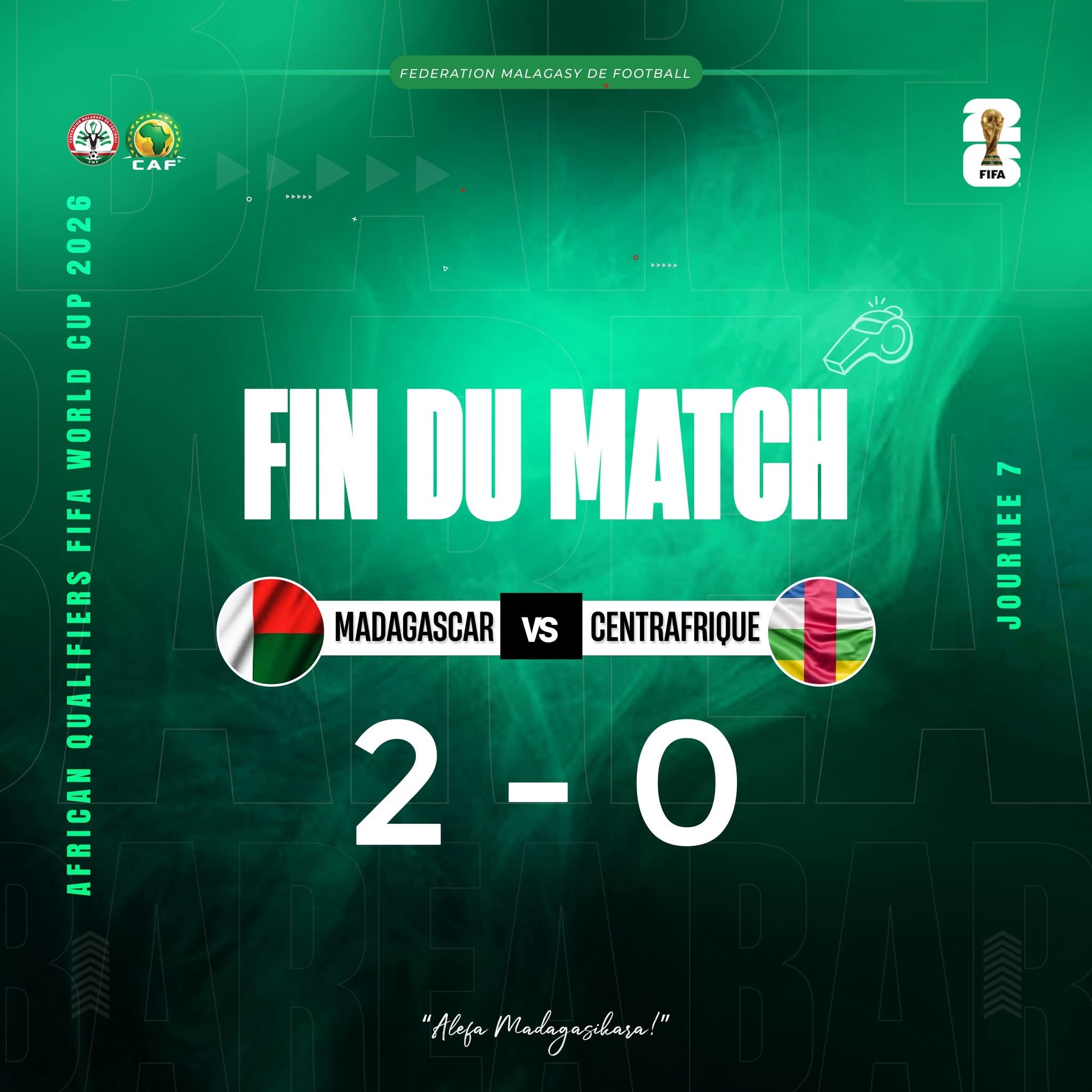 MADAGASCAR 2 - 0 CENTRAFRIQUE#Alefa #bareaFédération Malagasy de Football