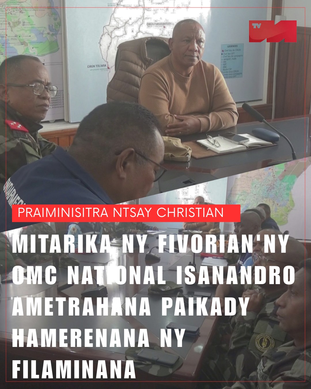 Ny Praiminisitra, Lehiben’ny Governemanta Atoa NTSAY Christian no mitarika isan'andro ao amin'ny Toby Ratsimandrava ny fivorian’ny OMC NATIONAL ( Organe Mixte de conception ) noho izy no Filohan’izany araka voafaritry ny Lalàna. Mikatsaka hatrany ny tenany miaraka amin’ireo Mpikambana ao amin’ny OMC/NAT mametraka ny paikady amin’ny fametrahana ny filaminana eto amin’ny tanin’ny Repoblikan’i Madagasikara.Araka ny nambaran’ny Mpitondra tenin’ny Governemanta Rtoa MARA Volamiranty Donna. Minisitry ny Serasera sy ny Kolotsaina dia manohy ny asany avokoa ny Mpikambana rehetra amin’ny Governemanta.Amin’ny anaran’ny Governemanta dia manao antso avo hoan’ny rehetra hatrany ny tenany mba samy ho tony.Mampatsiahy koa Rtoa Minisitra mba aoka ny vaovao marina, voamarina ary voalanjalanja ihany no voizina.
