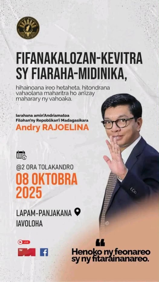 FIFANAKALOZAN-KEVITRA SY FIARAHA-MIDINIKA IRAHANA AMIN'NY FILOHA ANDRY RAJOELINA