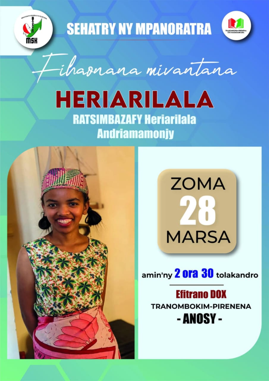 Hisy ny fihaonana mivantana amin’ny mpanoratra Heriarilala RATSIMBAZAFY Andriamamonjy ny zoma 28 Marsa 2025 amin’ny 2 ora sy sasany izay hotontosaina ao amin’ny efitra DOX Tranombokim-pirenena Anosy