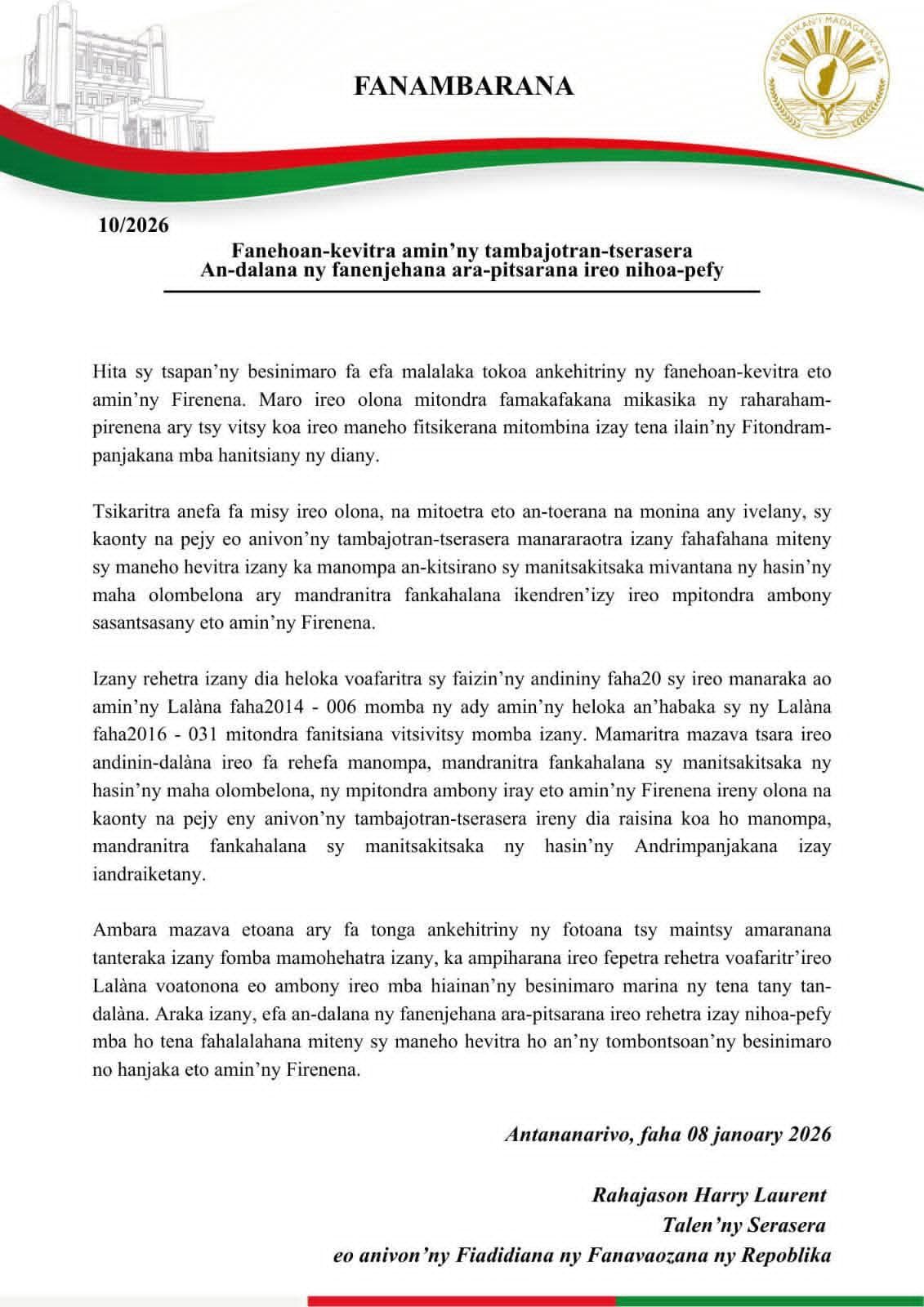 π…πšπ§πžπ‘π¨πšπ§-𝐀𝐞𝐯𝐒𝐭𝐫𝐚 πšπ¦π’π§β€™π§π² π­πšπ¦π›πšπ£π¨π­π«πšπ§-𝐭𝐬𝐞𝐫𝐚𝐬𝐞𝐫𝐚.𝐀𝐧-𝐝𝐚π₯𝐚𝐧𝐚 𝐧𝐲 𝐟𝐚𝐧𝐞𝐧𝐣𝐞𝐑𝐚𝐧𝐚 𝐚𝐫𝐚-𝐩𝐒𝐭𝐬𝐚𝐫𝐚𝐧𝐚 𝐒𝐫𝐞𝐨 𝐧𝐒𝐑𝐨𝐚-𝐩𝐞𝐟𝐲.©️ PrΓ©sidence de la Refondation de la RΓ©publique de Madagascar - PRRM