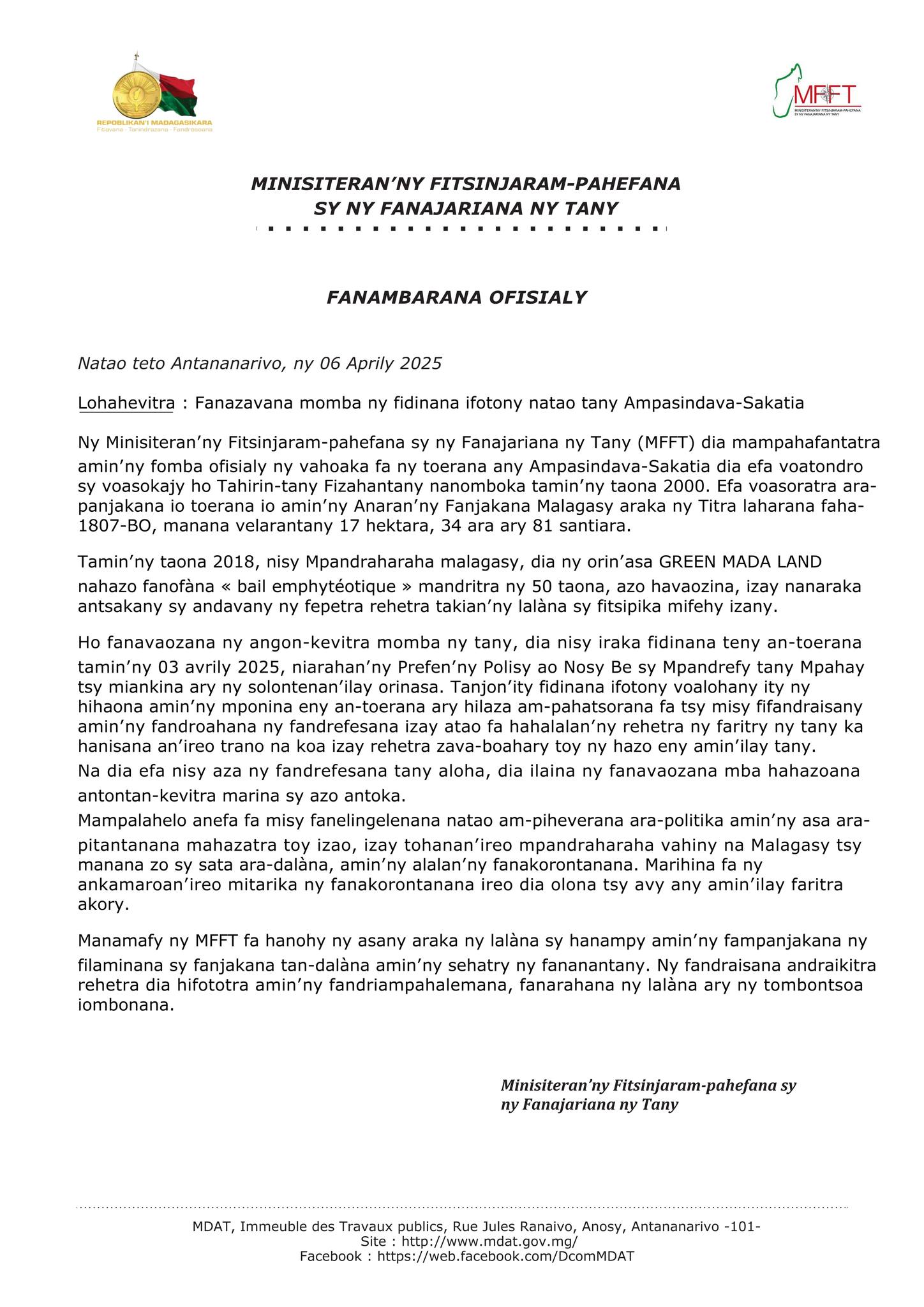 > FANAMBARANA OFISIALY / COMMUNIQUE OFF...