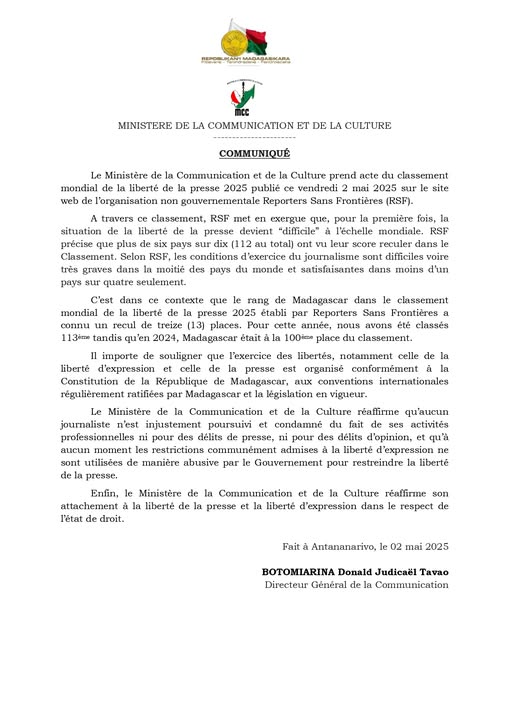 COMMUNIQUÉ
