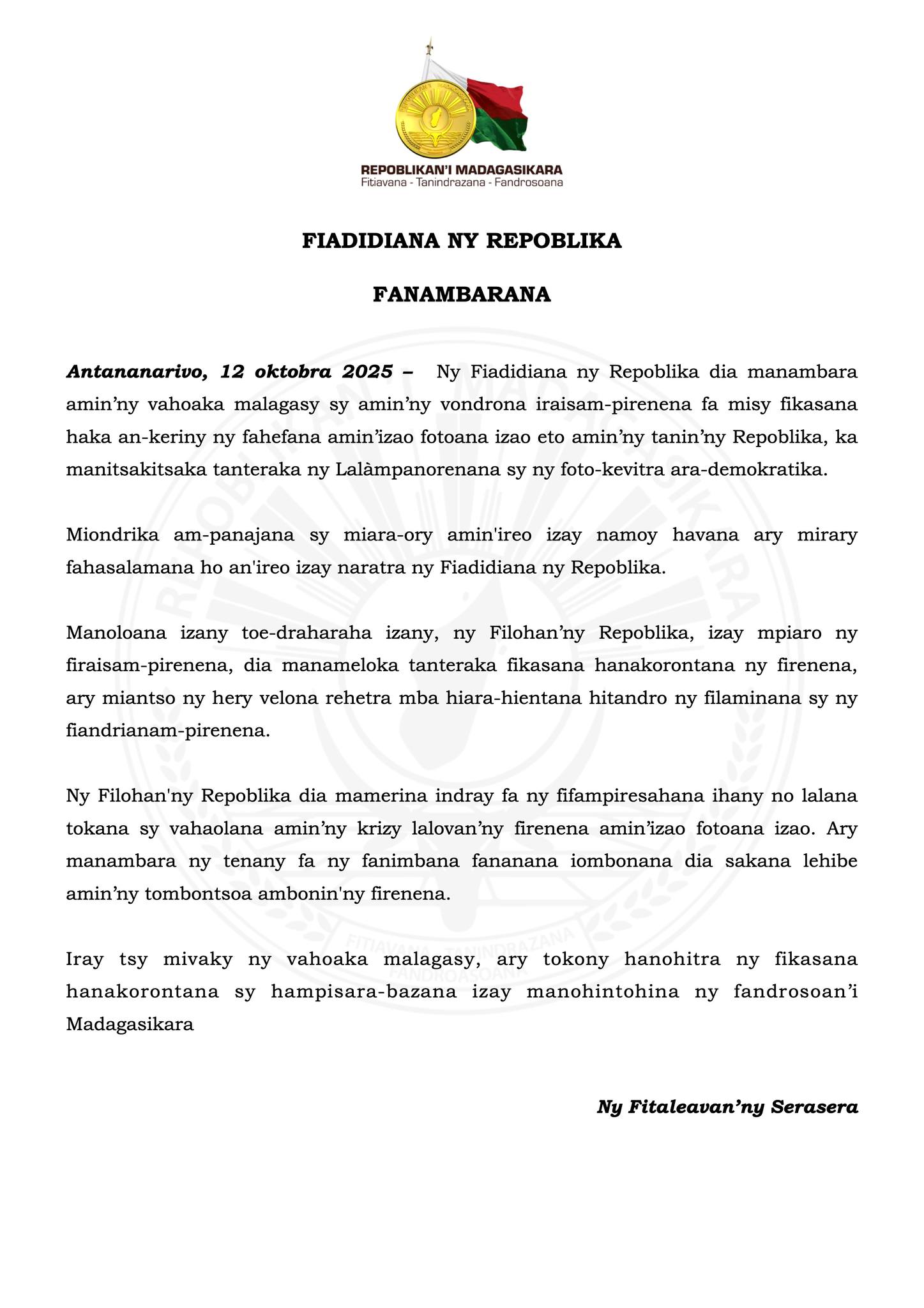 > FANAMBARANA ( COMMUNIQUE )